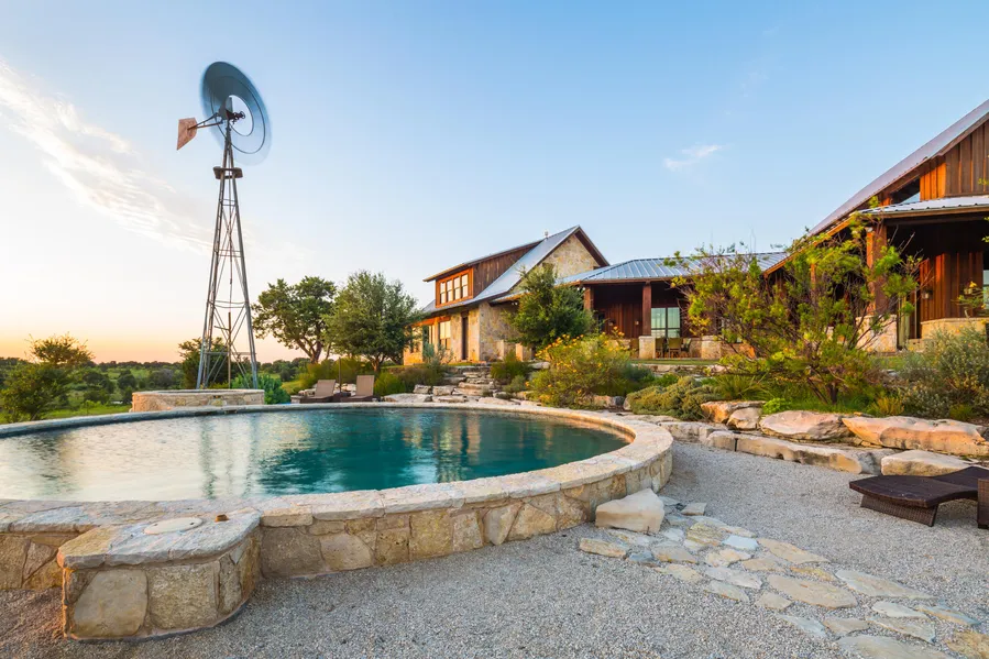 The back porches match the charm and style of the home with 10-12 deep cover running the length of the west view side of the house providing views that gather in the entire valley. An outdoor kitchen and native stacked stone walls leading down to the pool area create a retreat that is truly unique. Sunset views overlook an on-site lake, Dinosaur Valley State Park, the Paluxy River valley and beyond.