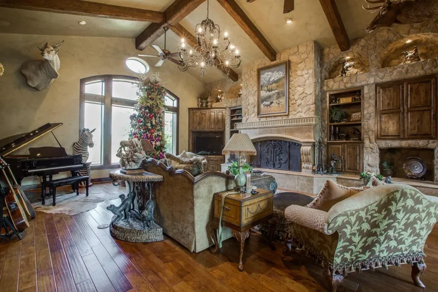 Inspired by great lodges from around the world and built by the finest craftsman, 4R Farms is an exceptional Equestrian estate offering 27 acres of oak covered, park like grounds, two guest cottages, and a "no detail left out" 36 stall barn with a large trophy room, and a fully fenced riding arena with drainage and professional footing. Located within 1.5 miles of Boerne at the end of Scheele Road, one mile from Geneva School of Boerne and two miles from downtown Boerne. The main entrance has an electric gate with paved roads throughout the property. Upon entry you will immediately feel the privacy of the estate. You drive along three paddocks where horses graze, the main house begins to come into view with its stone and stucco exterior, and its red tile roof. Once you park in the circle drive in front of the house, you will enter through a large arched entry into a front courtyard whe...