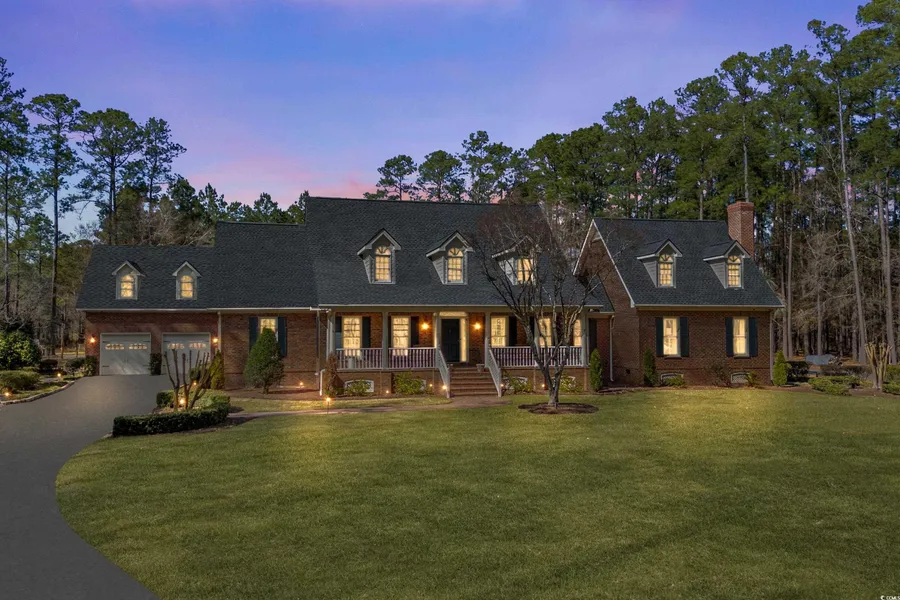 Welcome to this extraordinary luxury country estate, nestled on 5 acres of private, peaceful land, offering unparalleled serenity. The property is accessed through a brick-gated entrance with elegant wrought-iron gates, leading to a stunning all-brick home with a welcoming covered front porch. In total, you'll find 6 bedrooms, 5 full bathrooms, and 2 half baths, including 2 master suites. The spacious main house features an inviting formal library with built-in bookshelves, a formal dining room, and a living room with a gas fireplace, which flows seamlessly into a sun-filled sunroom. The chef's kitchen is a masterpiece, featuring Thermador appliances, granite countertops, a large work island, a wine cooler, and abundant custom cabinetry. A convenient dinette area and a walk-in pantry add to the home's functional design. The luxurious first-floor master suite includes a gas fireplace, walk-in closet, and a spa-like bathroom with dual sinks, a jetted tub, and a dual walk-in shower. A second staircase leads to a private guest suite with a full bath, perfect for guests or as a flex space. Upstairs, a second master suite and two additional guest bedrooms provide ample space and comfort. This home offers 9-foot ceilings, hardwood floors, and a laundry room for added convenience. Wow and 5 car garages... The attached 2-car garage features a half bath and a game room with easy access to the patio and pool area. An additional 3-car detached garage/guest house includes a climate-controlled storage room, washer/dryer hookups, and a spacious 1-bedroom, 1-bathroom apartment with a partitioned garage bay and separate outdoor fenced patio. The outdoor entertaining space is designed for ultimate relaxation and entertaining, with a heated saltwater pool and hot tub, loggia, firepit area, and plenty of lounge space and is fully fenced. There is a heated workshop where the fully self sustaining computerized pool equipment system is housed plus a 2 car carport. The yard also boasts mature landscaping with lighting, and a shooting range. Upgrades include a full roof replacement in 2023, all new gutters in the last 3 years, 3M Window Treatment to reduce sun damage and make them hurricane proof and provide security, a water purification system, ready heat instant hot water system, 2-500 lb propane tanks, a security system with front and back cameras, a fully encapsulated crawl space with a dehumidifier, the pool was resurfaced in 2024 and more. Enjoy the privacy and tranquility of country living, all while being just a short drive to downtown Conway, the hospital and the Beach!!!