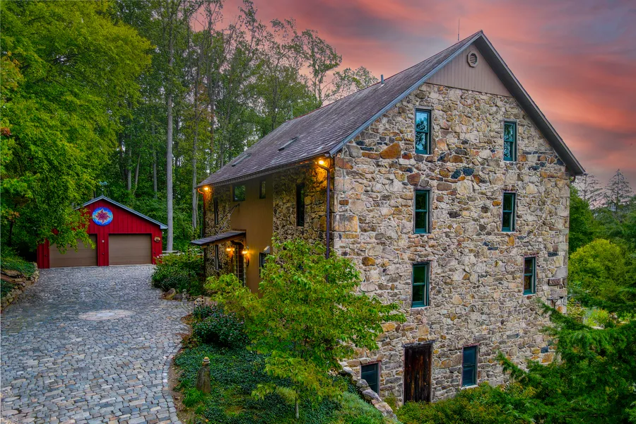 THE BARNHOUSE PROPERTY. Custom made or hand made is used to describe every inch of the interior and exterior of this marvelously converted barn only 5 minutes from downtown Emmaus. The property is 5 acres. The northern section of the property, just over 2 acres, is south facing slope. It is forested primarily with tulip poplar, oak, maple, hickory and dogwood. In the early spring, you might find morel mushrooms hidden amongst the leafy forest floor. The south sect. is approx. 2 acres, is mostly grass field with an assortment of oaks, maples and dogwoods adjacent to Vera Cruz Rd at the bottom of the lot. Tucked in a hollow, youll find solar panels that provide power to cover nearly 2/3 of annual electric costs. The property has an agricultural feel, yet, just over There are many bird species present, including cardinals, red tailed hawks, hummingbirds and the occasional oriole. The land is situated in a mostly wooded Conservation Zoning District along South Mountain with designated 5-acre minimum parcels. This special zoning designation is intended to preclude development and maintain the hillside in its natural state. The residence is a converted stone bank barn that was built sometime around 1810. It includes 3 stories on the southeast facing side and 2 on the uphill, bank side. Starting in 1998, the owners conceived and designed the conversion of this historic structure with energy efficiency and sustainability as guiding principles. It is a unique living space. The interior is spacious with exposed timbers and ceiling joists employing natural and reclaimed materials, largely sourced from the property. There are many windows, most of which are set in the stone walls and characterized by deep window sills with room enough to sit in. The building is approximately 2700 sq. ft. with 4 bedrooms and 3 baths. Theres one bath on each floor, 2 beds upstairs, one on the main floor and one on the bottom floor. The spacious main floor includes the kitchen, dining area, the living room and the primary bedroom and bath. Much of the main floor is open ceiling, 27 feet high at its peak. The heating and cooling source is a geothermal system, which is highly efficient. Radiant floor heat makes the downstairs and main floors slightly warm to the touch in the winter. In the summer, cold water is sent to an air handler on the top floor which cycles air across copper coils and sends the cool air out into the main space and into the bedrooms. There is an efficient free-standing wood burning on the main floor as a backup in case the power goes out or if you just want to watch the flame on a cold evening. Theres enough seasoned wood from the property, already split and stacked, to cover 2 winter seasons. The driveway runs from the street, across the front of the residence to a large garage that is plank wood painted barn red. The driveway is composed of approximately 7000 reclaimed cobblestones, most of which came from the Hoboken Rail Yards and the rest from the streets of Philadelphia. Surrounding the house on all sides is landscaping composed mostly of native plants that exhibit year round interest. Witchhazel blooms in February, followed by crocus, narcissus, hellebore, dogwood, service berry, lilac and much more. Theres an outdoor seating area in the former barnyard that is surrounded by low stone walls and shaded by a cantilevered trellis of concord grape. The view out the large dining window towards the south east encompasses the field and a wooded ridge in the distance. The scene is spectacular in the fall. The road at the base of the property, Vera Cruz Road, was initially a route used by indigenous people of the area. The Barnhouse Property is the kind of place you are happy to return to no matter where youve been. It is a perfect place to entertain large groups or small.