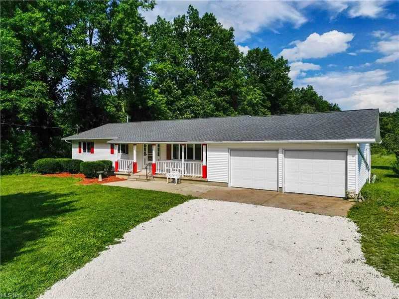 Ready to move in, newly remodeled 3 bedroom, 2 full bath Ranch, on 5 acres with a 50 x 32 pole barn with new metal roof, 2 car attached garage and 2 car detached garage. Enjoy the serenity in the enclosed sunroom or BBQ on the 15 x 15 covered pavilion with new metal roof. Lots of updates including all new luxury vinyl flooring, paint, all new light fixtures, updated bathrooms, new hot water tank, 2 new sump pumps in basement, septictank only 7 yrs old, new roof on house and attached garage. Stay cool in the summer with central air and extra warm in winter by the fireplace and whole house wood burning stove in addition to the electric heat pump and propane heat. Lots of closet space in all the bedrooms and the kitchen has lots of cupboard and counter space including room for 6 at the breakfast bar, and first floor laundry room. The full basement is another 1428 SqFt and has a vintage slat...