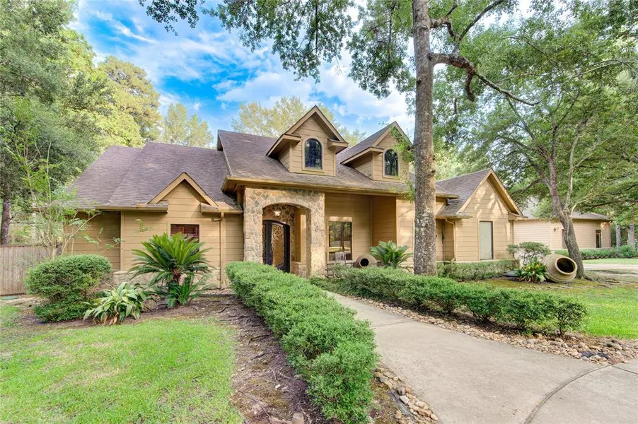 PRIVATE WOODLAND RETREAT on a 5 ACRE forest in the equestrian community of Red Oak Ranch. Grab your morning coffee and take in the cheerful song of birds seizing the day then relax and prepare for another restful night as deer tentatively explore the edges of your grove. Weekends find you poolside with family and friends creating a lifetime of memories. LIFE OUTSIDE - Spacious covered patio (17x15), HUGE covered pavilion (31x17), heated pool w/ waterfall. Detached garage/shop (30x30) oversized doors & fully finished w/ AC! MAIN HOME - Custom masterpiece featuring Cantera wrought iron doors, seamless glass windows, bespoke venetian plaster walls, designer lighting/plumbing fixtures. CHEF'S KITCHEN - Anchored by 6-seat granite topped island, Dacor convection ovens, Dacor 6-burner gas range, Jenn-Air built-in refrigerator, Fisher & Paykel dishwashers, wine fridge. CLOSE to EVERYTHING - HEB (6 min), I-45 (11 min), Market Street/Woodlands Waterway (20 min). SEE PICS FOR MORE! TEXT ME TODAY!