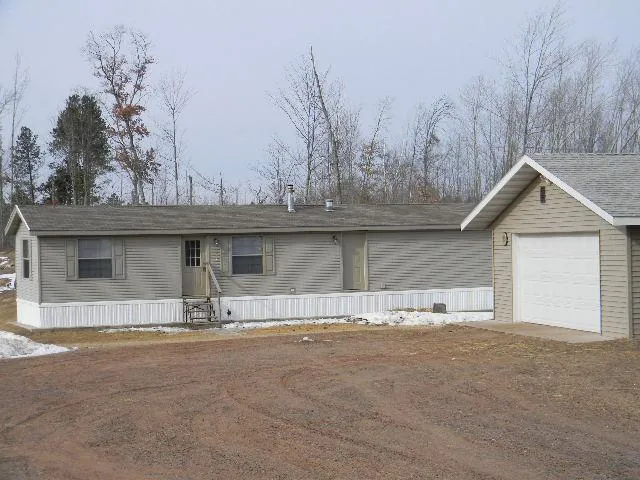 TOWN OF CHICOG. Quiet setting on 5 acres of land close to many lake and just down the road from Heartwood. Most trees have been cut and some new white pine have been planted. ATV and snowmobile trails right out your door. New in 2005, this home has an open living/dining/kitchen, two bedrooms, laundry area, and full bath. Two car garage all wired and insulated. Shed is also wired and insulated. Drilled well and conventional septic.