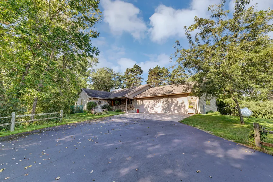 The views of crystal clear Graham Lake (full rec.) are AMAZING! This 3 bedroom/2 full bath/1 half bath with a 3 car insulated and heated garage is a home you never want to leave. The huge wall of windows overlooking the peaceful lake, along with a stone faced wood burning fireplace and open concept kitchen, are amazing. Master bedroom with master bath and walk- in closet on the main floor along with 1st floor laundry are what everyone wants. 2 more bedrooms with full bath on lower level as well as a huge Family room is perfect for friends & family. All of this on 5 acres to call home.