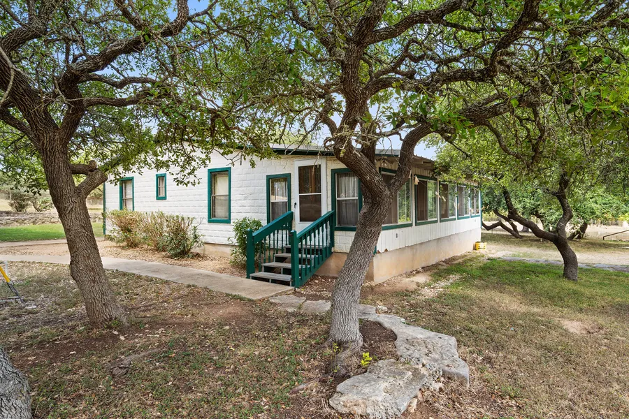 5 Manicured Acres with 3 Bed 2 Bath Manufactured home and Barn. This place is extremely well kept. The home has an open living room and kitchen. Split bedroom plan. Very nice additional indoor patio area on back of home that is great for entertaining. The property also offers a nice metal barn that has some covered horse stall area. The property is well fenced and cross fenced. Located minutes from Blanco and Johnson City. Less than an hour to both Austin and San Antonio.