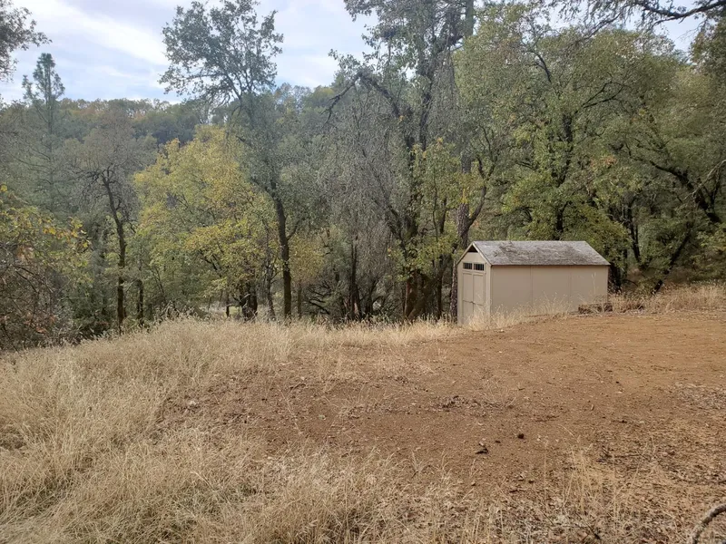 Useable 5 acre parcel with choice of building sites. On top from Round Tuit with mostly level building site and local view or rough driveway from the bottom near Oak Meadows close to seasonal creek. Potential for small pond at the bottom. CCRs allow for limited livestock. There are two small corrals in place, a storage shed and a water holding tank.