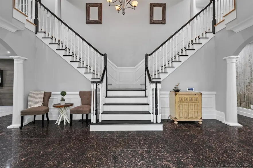 Fabulous Custom Gated Family Compound! Escape to luxury in this stunning family compound, nestled on over 5 acres of beautifully landscaped, perimeter- treed privacy. This exquisite estate boasts 6+ spacious Bedrooms 4 full and 3 half baths and almost 7,000 sq. Ft. Of interior living space. A fully finished 3rd floor adds 2 more bedrooms, a Great Room with Kitchenette and full bath, perfect for an au-pair suite. The stately main foyer welcomes your guests with beautiful double curved staircases. An expansive Living Room includes a fireplace, wet bar, and French Doors to a balcony. The custom chef's kitchen has a large center island/breakfast bar, a gas cooktop, wall ovens, tons of counter top working space, and Dining Area that seamlessly flows to a perfect casual main level Family Room.6+ Bedrooms on the upper 2 levels include an impressive Master Suite that showcases a large bedroom with a customized tray ceiling, fireplace, and coffee bar for leisurely mornings, as well as a Dressing Room, Walk-in closets, a private Gym, and spa inspired bath with glass shower and versioned whirlpool tub. A fully finished lower level houses 2 offices, a conference area, large seating area, play room, and bath. Could be an ideal in-law suite with separate entrance. An expansive outdoor living area will host memorable gatherings and include a covered deck, and an oversized uncovered deck area with full kitchen. A level yard is perfect for a pool. A truly exquisite home!