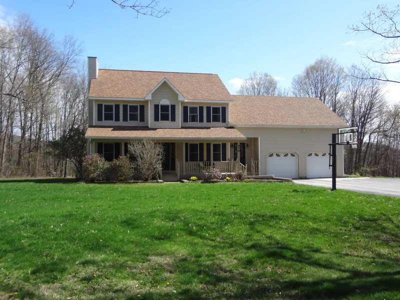 Tucked at the end of a town dirt road with 5 acres of privacy, this is truly a wonderful spot, where nature is part of your everyday life. Explore the adjacent trails, garden, watch wildlife, raise chickens or just play in the expansive yard surrounded by trees, with distant hills as your backdrop. The well-maintained home itself has many great features: large mudroom entry, beautifully updated full baths, walk-in closets in every bedroom, hardwood in dining and office, sunny back deck, wide front porch, oversize 2-car garage plus a large detached shed, paved driveway with space for basketball court, and an unfinished basement that is rough plumbed for a bath. Close to Hinesburg village and schools, golf courses, and an easy drive to Burlington.