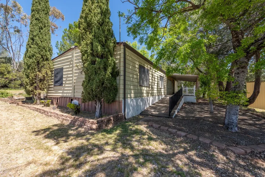 Country home with a huge shop on 5 acres! Live here now! Build wealth in the future! Located adjacent to Cameron Park businesses and services, this prime property is in the path of progress! Nestled in a lovely setting this home has a vaulted living room, laminate flooring, a spacious kitchen, an inside laundry room, a big front porch, and new roof and gutters. Fantastic shop is 24 x 50 with a concrete floor, skylights and a 16 x 16 roll up door. Two outbuildings and a cargo container on the property. Flat areas for critters or room for toys and boats. Property is zoned for future development of 25+ condos or apartments (or can remain a single family residence as currently used). Located just TWO minutes from a vibrant shopping center, medical services, restaurants and more. Enjoy life in a desirable and thriving foothills community with an aquatic center, a golf course, community center and a small lake with a walking path, catch and release fishing, disc golf, tennis, and pickleball, all nearby!