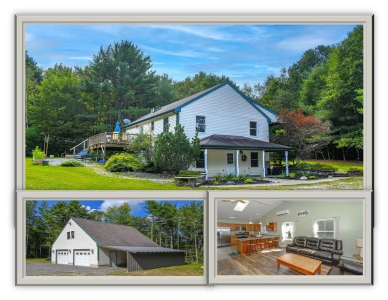 Beautiful 4-bedroom 2.5 bath home located on a private 5-acre lot. The main level offers an open concept kitchen and living room with cathedral ceilings. Granite counters and kitchen pantry. New heat pump/AC unit. A primary bedroom with a private bath and walk-in closet. The second bedroom is located on the opposite side. The half bath is off the hallway. The lower level offers the third and fourth bedroom, a full bath, and a cozy family room. There is a separate laundry/utility room. The heated garage is oversized, 32 x 32, with a 14x28 +/- finished bonus room above. Relax on the front farmers porch which extends the length of the home. The large private rear deck is located off the kitchen perfect for entertaining or enjoying the summer nights. Pretty landscaping surrounding the home and a nice private yard. Pleasant Lake is a short distance away and offers a resident only sandy beach ...