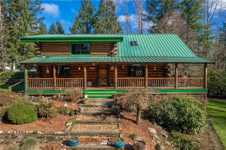 Mtn Vista is a serene location blending genuine log home craftsmanship & modern conveniences. Amish-built on 5 acres, it's designed for function & beauty. Constructed of aged Montana Pine from private forest. Built to last w/ metal roof, custom front door, wood-framed double-paned windows. Primary suite w/soaking tub makes up the entire 2nd floor. Huge partially finished crawlspace could be potential living space or future wine cellar. Outdoor wraparound deck overlooks garden & private pond. Fire pit, plenty of parking, covered RV parking w/30 amp hookup. Converted singlewide is approved as a storage facility and is used as studio/office. A separate shop is currently used as a glass studio. 4 car garage provides parking for all your toys.