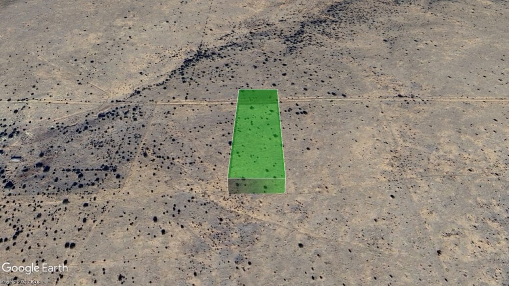 Coordinates: NW corner: 35.3031, -104.5473 (ROAD) NE corner: 35.3031, -104.5465 (ROAD) SW corner: 35.3007, -104.5474 SE corner: 35.3007, -104.5465