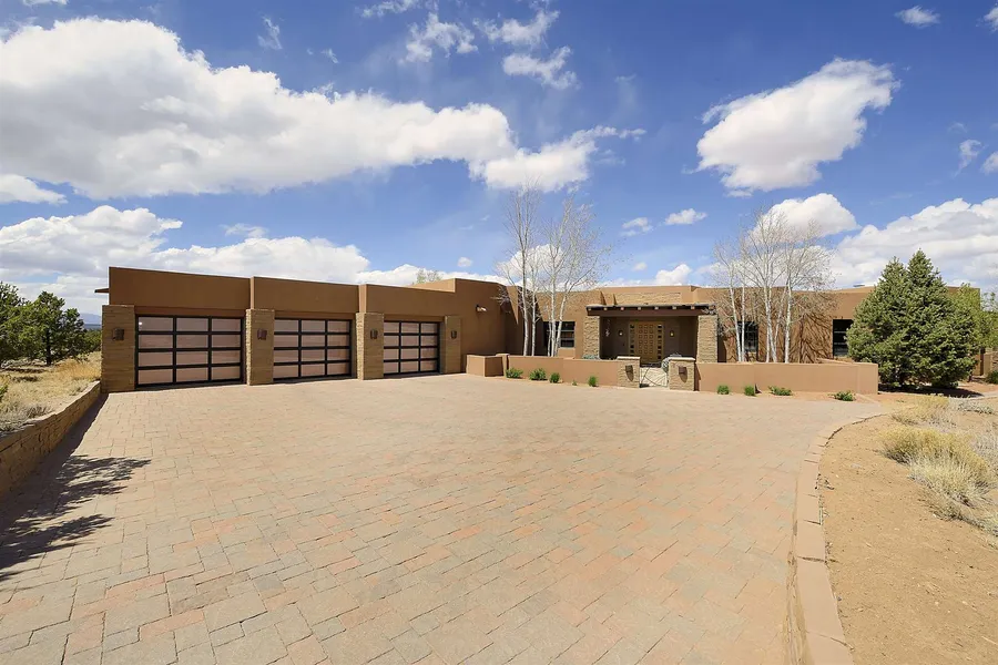 The home that everyone wants! Sited on 5 acres with fabulous views of the Sangre de Cristo and the Jemez Mountains, this 3 bedroom 3 bath home features stunning outdoor entertaining areas and lush landscaping. The views are spectacular from every room and the extensive portals make indoor/outdoor living a breeze. Full air conditioning and radiant heat are a superb combination. Five fireplaces are cozy backdrops to bedrooms, living areas and outdoor sitting areas. The modern interpretation of Santa Fe Style provides a warm, but contemporary feel. Las Campanas is a gated community with outstanding maintenance and security. Membership to the Club at Las Campanas is available, but not required.