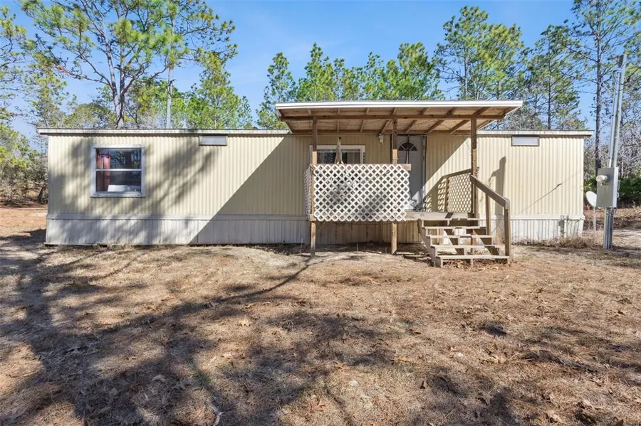 Space for Animals, Gardens & Freedom - 5 Acres Included Mini farm living on approximately five beautiful, wooded acres! Originally used as a hunting cabin, this three-bedroom, two-bath mobile home is well-suited for comfortable full-time living and offers a unique blend of rustic charm and everyday functionality. The inviting interior features an electric fireplace, along with separate living and dining rooms that create a warm, well-defined layout. The fully equipped kitchen includes a breakfast bar, built-in oven with range, microwave, refrigerator, and washer and dryer. The primary bedroom easily accommodates a king-size bed and offers a spacious walk-in closet and private en-suite bathroom. Two additional bedrooms provide generous closet space and flexibility for guests or home office use. Outside, the expansive approximately five-acre setting is ideal for a mini farm lifestyle, with plenty of room for animals, gardens, pens, coops, or future outbuildings. Enjoy privacy, natural surroundings, and the freedom of acreage living, perfect for homesteading, recreation, or creating your own peaceful country retreat.