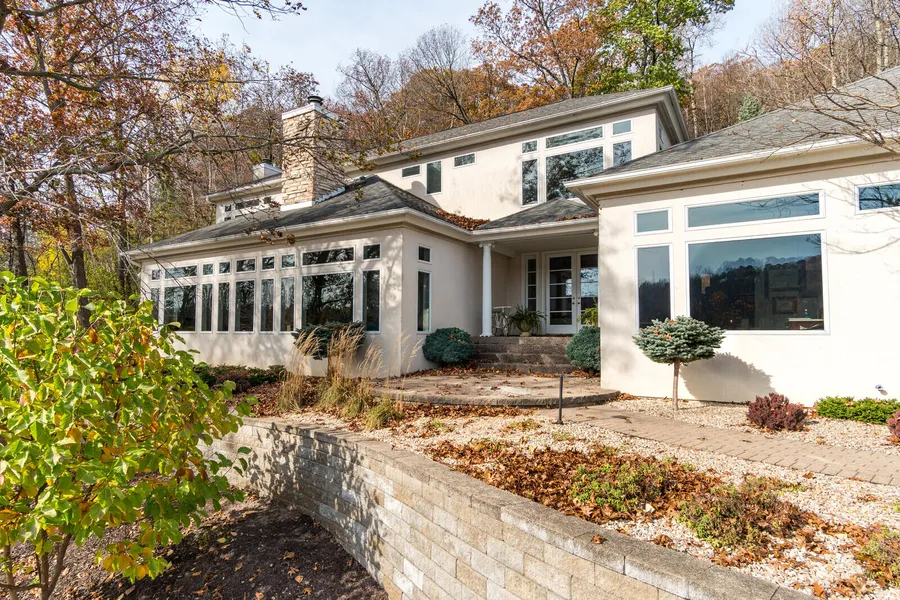 Experience unparalleled elegance in this LR Ross custom-built masterpiece, thoughtfully positioned on five scenic acres with southern exposure and breathtaking views. Nestled on a private, shared road, this home offers both seclusion and sophistication. The sun-drenched living room, framed by expansive windows, invites natural light throughout the open-concept space. Featuring four bedrooms, including two lavish suites, the home exudes refined comfort. The chef's kitchen is appointed with top-tier appliances, striking South African granite floors, and dark birch cabinetry that continues into the laundry and office areas. A serene three-season room and a beautifully landscaped brick patio complete this extraordinary property--a truly rare find.