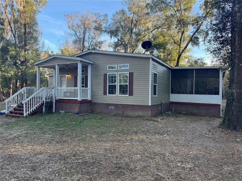 Dreaming of a private homestead where comfort, space, and nature come together. Enjoy beautiful views with a huge outdoor shop and entertainment area. This large structure features electricity and water with all the furniture and games included. There is a large Carport and parking area with an outdoor shed. This property features a great fire pit with a beautiful view of wildlife especially deer. Fenced on 3 sides this property has a gated entry with keypad. Set on 5.88 acres of natural beauty and trees the property views are picturesque. Zero turn lawn mover will convey in sale. The Live Oak Home model residence offers thoughtfully designed open living with luxury finishes throughout. With an extra large rear porch perfect for relaxing with your morning coffee. Inside, you ll find over 2,000 square feet of living space featuring three bedrooms, two full bathrooms, a dedicated dining area, and a welcoming living room complete with built-in shelving and a desk. The kitchen itself is designed for gathering, featuring recently updated appliances, a spacious pantry, and a large island ready for everyday meals and special moments alike. The owner s suite is a true retreat, offering a separate soaking tub and shower, water closet, double sinks, and countertops that coordinate beautifully with the kitchen finishes. Mature landscaping gives the property a true Old Florida feel, highlighted by a massive eucalyptus tree, magnolia, oak trees, palms, and more. There a dog run that can stay or be removed by the owner. When you re ready to explore beyond the property, the Florahome Trailhead is just down State Road 100, offering access to scenic trails and outdoor recreation. Schools, grocery stores, and daily essentials are all within a comfortable drive. Schedule your private showing today and experience everything this exceptional property. Professional Photos coming soon.