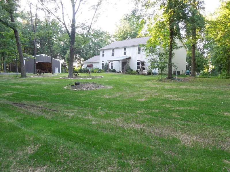 Discover the perfect balance between privacy and access; between untamed woodlands and manicured landscapes. This lovely home sits on 5.093 wooded acres between Sunbury/Galena and New Albanyacross the road is the Royal American Links golf course. Enjoy the sunny in-ground pool and expansive patio or explore the flowing creek and wildlife. There are two outbuildings for hobbies and a front lawn for sport. Everything about the interior of this home is spacious, from the soaring great room to the bathrooms to the bedrooms with their expansive walk-in closets. Four bedrooms, plus a second floor full office could serve as a fifth bedroom with an armoire. First floor master suite. Truly a special opportunity to enjoy wildlife in a gorgeous setting with a fantastic at-home lifestyle.