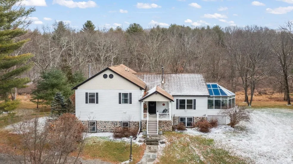 Pampered & Private.Do unto others . . . is the theme of this home. The seller wanted the new owner to move in with a fresh coat of paint, new carpeting, new appliances and many upgrades. On a private dead-end road, nature abounds. The rear of the property backs onto wetlands and then to a larger parcel. Well protected.The main level has an open floorplan: Living room (with fireplace insert)/dining area and kitchen. Off the living room is the sun room and one of the exits to the deck.Up one-half of a level are the sleeping quarters and laundry: Primary en-suite (with both tub and shower), two more bedrooms and a full hallway bathroom.The lower level is ~1728 of open space. Wood stove sitting area, space for a dining/game table, larger room for a pool table and other activities. Two bonus rooms. French door to the exterior.Equi-distance to Hudson, NY and Great Barrington, MA. Catamount Adv...