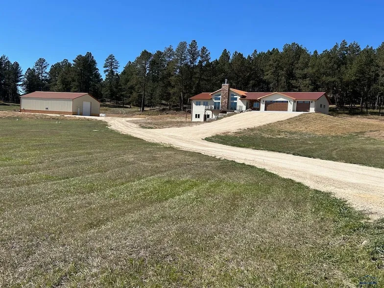 Listed by Jenni Brue, Keller Williams BH, 605.381.1055 Move in Ready New Construction! Why wait months for a new build when your dream home is ready today? Welcome to Luxury at your 5 acre retreat. This 4500+ square foot home is a must see. The great room welcomes you with 15' ceilings as you enter this true Zero Entry level home. This great room boasts a ledge rock wood burning fireplace, spacious 25x22' living room with patio sliders to the front maintenance free deck. The kitchen has leathered Quartzite counters with a waterfall edge on the island. Gas or electricity is available for a 36" range. Dual full sized sinks and under cabinet lighting enhance the kitchen. The pantry has built in cabinetry along with designated space for an additional refrigerator/freezer and wine cooler. The spacious primary bedroom has it's own constellation deck for viewing the stars. The Wet Room offers a walk in shower and soaking tub along with dual sinks. Doing laundry is a breeze since the primary suite has it's own laundry room off the walk in closet. Two additional bedrooms and bath accompany this level. Downstairs offers a home in itself, perfect for a multigenerational family! It includes a family room, full kitchen, gas fireplace, walkout patio, game room, office, laundry and two additional bedrooms. One of the bedrooms is an ensuite with a walk in shower and patio access. A separate staircase to the garage is off the game room, giving this floor it's own entrance. The attached heated garage is 40x37' and equipped with a hot/cold spigot, utility sink and Tesla charger. The 40x60 shop will come in handy for all your toys. Horses are allowed and the shop would make an ideal barn. Additional modern home features include two furnaces, two ac units and dual tankless hot water heaters; each floor individually controlled. A nature conservatory backs up to the property with over 252 acres of useable forest. Seller is a licensed real estate agent in the state of SD.