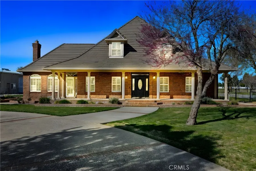 Custom Dream Home on 5 serene acres! Quality like this doesnt come often- this brick home has a cement-tile roof and sprawls 3,306 sq. ft. with 4 bedrooms, 3 full baths plus an office!The first floor features a spacious office, formal dining room and a Bakers dream kitchen with double ovens stainless appliances, induction cook-top, granite counters, eating bar & Breakfast nook. The kitchen opens to your Great Room that has a pellet stove with brick hearth!There are 2 bedrooms on the first floor, a roomy guest bedroom with a walk-in closet and your Primary-suite! This Primary-suite sprawls over 800 sq ft alone- it has two cedar lined closets, a soaking tub, tiled shower, dual sinks and a door that leads to a covered backyard porch!Upstairs, there are 2 additional over-sized bedrooms- one of which could be used as a second primary suite, attached to another spacious bathroom with dual-vanities, tiled shower & giant walk-in closet!In the front youll pull up to your circular driveway and pull into your 3-car detached garage, Above the garage there is a finished space- perfect for storage or possible guest-suite/ADU.This backyard will make you want to have stay-cations with your outdoor kitchen and palatial fenced-in pool! While youre relaxing in your sparkling pool enjoy the view of your fully fenced & irrigated pasture! Youll love being a hobby famer with your orchard of 34 fruit trees- these include cherries, apples, peaches, plums and multiple varieties of citrus. Now for the real cherry on top, the SHOP- 50x60 ft. w/ 3 large rollup doors and ? bath with new LED lights, 200amp panel and several 240V locations. There's a covered RV parking area with hook-ups as well. On the roof of the shop theres a 58-panels of OWNED solar that service the entire property!This stunning home provides, style, comfort and value! Call today for a full list of features this country estate provides and make your private tour today!
