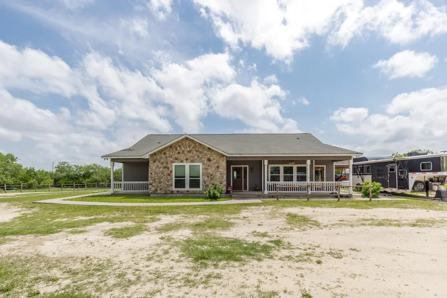 Hidden oasis on approximately 5 acres provides plenty of wildlife and space for horses and/or other ag! Virtually everything necessary is already in place including hay barn, round pen, stables, storage sheds and area for future arena. Exceptional home includes enormous kitchen with abundant storage and gas cooktop atop a spacious central island. Tremendous primary ensuite will delight as well as the 2 ample secondary bedrooms and the separate office. Lovely and large, the family room can house plenty of friends and relatives. The side attached garage complete with huge attached carport can serve multiple purposes. Separate laundry room has extra storage and sink. Four porches allow plenty of outdoor seating and viewing area. And, what a view of country, just as you like it - even the fencing is attractive here! Seeing is believing, and once you see it you will realize that now is the ti...