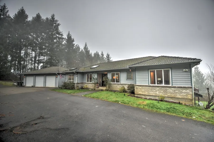 Come live among the clouds with gorgeous large picturesque windows that give you sprawling views of Mount Rainier. This 4 bed, 3 bath almost 3700 sq ft home. Lovely entry opens up to spacious sunken living room with fireplace, overlooking property and mountain. Open kitchen with eating area/breakfast nook, separate dining surrounded by windows. Newer hardwood floors, vaulted ceiling with fan. 9ft ceilings downstairs and up, plus den/office. 5 piece primary bath, walk in closet and deck off primary bedroom. Laundry on main level. Round about driveway, 3 car garage with covered breezeway makes for nice BBQ/cooking area. HUGE rec-room with plumbed for wet bar. Could convert into second living space. All on just over 5 acres. Mintues from Silver lake and Rapjohn a few more to Mount Rainier.