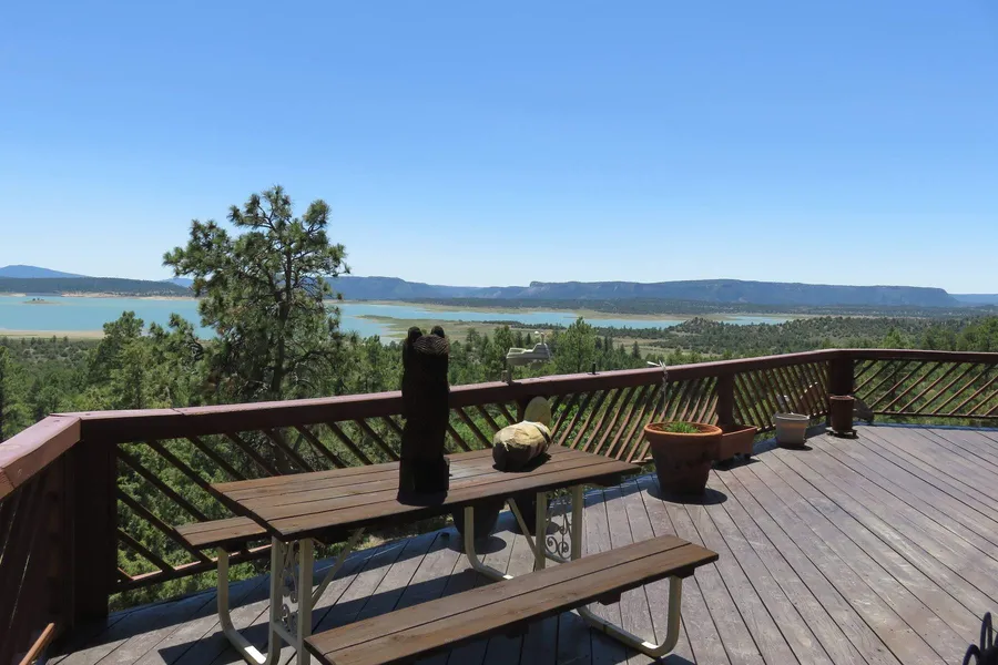 Gazing out onto Heron Lake can be very therapeutic. Imagine living so close to the lake you can actually walk down with your kayak & spend the day on the water. Light & bright, peaceful & quiet with gorgeous views of the lake in all directions. Situated in the gated community of Laguna Vista Subdivision on 2.55 acres, this 6000 sq ft home built in 2000 with complete wraparound deck has 3 levels with an oversized one car attached garage and a 24x30 two car detached garage. The kitchen, dining & living room with wood stove are open to one another, great for entertaining friends and family. The master bedroom and guest bedroom have sliding glass doors exiting onto the deck. The loft room on the third level would be a great area for a pool table & den/office area. The 3000 sq ft of lower level is partially finished with drywall and 3/4 bath plumbed in. Use your imagination and finish this space to your heart's desire. As a bonus, the sellers are including the adjacent 2.55 acre parcel with this property for added privacy & quiet enjoyment. Perfect home for a hunter's lodge, retreat house or 2nd home. Enjoy the elk, mule deer & wild turkey sharing their space with you. Rivers, lakes and streams are abundant in the Chama Valley and some of the best fishing in the state.