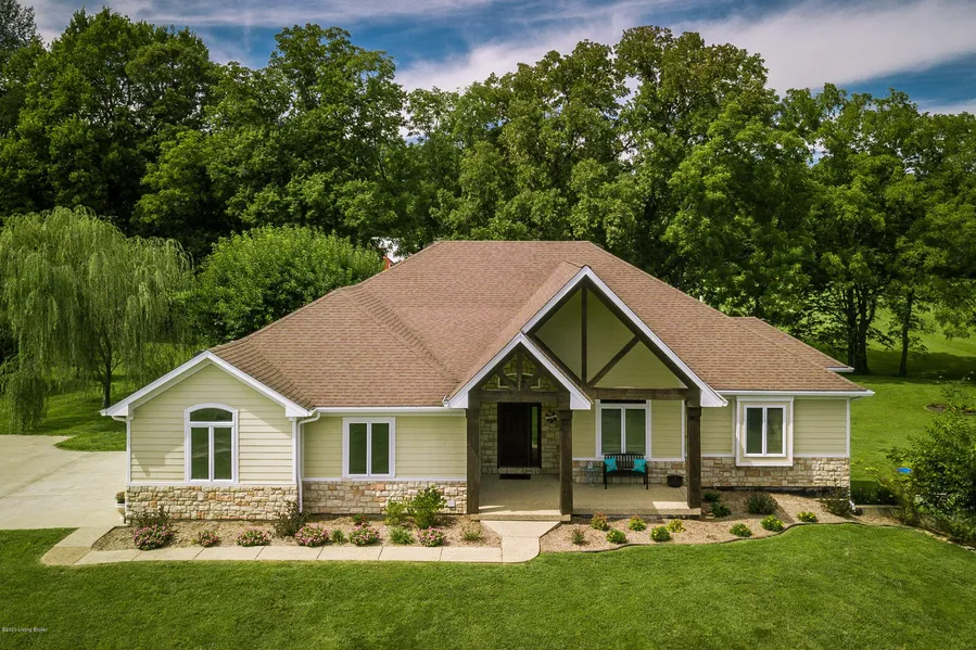Enjoy sunrises and sunsets with 5 acres of wooded views and privacy. The beauty of this secluded, country location is that you are still so close to town, with good schools, great neighbors, quick access to the expressway, and the grocery and restaurants are just a hop-skip away. This 4-5 bedroom walkout ranch offers one floor living, plus a 3 car garage. A barn, chicken coop, and turkey pen, are in the rear of the property. The home has soaring ceilings, ''Texas-sized'' rooms, and is loaded with openness and natural light. There are closets everywhere, giving you tons of storage! The first floor has striking real hardwood floors, and the lower level sports cork tile floor throughout. No carpet to be found! There is a 2 yr old Geothermal heating and cooling system, and the basement has