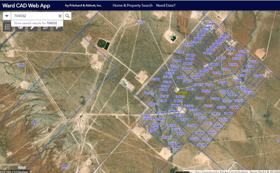 Research Parcel InformationCoordinates:: 31.420426N 103.219514W, 31 25.2256'N 103 13.1708'W, 31 25' 13.5336"N 103 13' 10.2502"W, 13R 669238 3477568