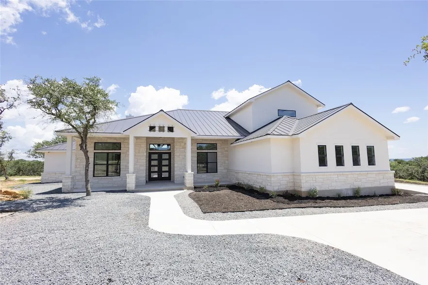 Luxury home with an ELEVATOR, 4 ensuite bedrooms, 4.5 baths, and a 3-car garage, spanning 3,456 sqft. The home has FOUR stunning ensuites, all with custom countertops. The expansive primary suite features a large walk-in closet and freestanding tub for peaceful relaxation. Sleekly integrated, the elevator provides seamless access across all levels, balancing functionality with interior beauty. The 3-car garage includes a walk-in shower, and direct access to the pantry and utility room. The mudroom, across the hall, exits to the outdoor patio and grill. This unrestricted 5acre lot with no HOA, offers beautiful panoramic Hill Country and Canyon Lake views. Ideally located between San Antonio and Austin, and minutes from Wimberley and Gruene Hall, it ensures an unmatched lifestyle. Included is a covered boat slip with Marina access and close proximity to Canyon Lake s private airstrip. This...