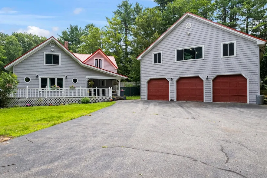 Nestled along a peaceful dead-end road, this one-of-a-kind property offers the perfect blend of privacy, character, and versatility. What I love about the home is it's contemporary unique design, and its amenities. The open-concept kitchen and dining area, sunroom, front and rear decks, inground pool, barn, garden, fenced in field, chicken coop and three bay garage with an accessory dwelling make this property a homesteaders dream. Stay cozy in the colder months with a wood stove, complemented by an efficient on-demand heating system for year-round comfort. An on-demand generator is ready for those harsh storms. Step outback and you'll find a beautifully maintained in-ground pool and patio, perfect for entertaining, a spacious barn, a fenced-in field ready for animals or gardening, and established garden. A detached 3-bay garage provides ample space for vehicles, tools, or hobbies and above it, an accessory dwelling unit (ADU) offers excellent rental income potential, guest accommodations, or multigenerational living. All it needs is a complete kitchen! Whether you're seeking a private homestead, a mini-farm, or an income-producing property, 81 Tenny Hill Rd offers a rare and flexible opportunity in the heart of Raymond.
