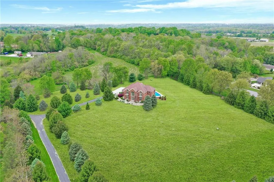 Privacy is at the core of this luxury home located on 5 ac in the heart of Center Grove. Enjoy the beautiful outdoor setting from the large patio or new inground pool. Amenities incl a 4 car side load garage w/ epoxy flooring perfect for your personal vehicles or private collection. A grand entrance opens to a custom staircase, punctuated with oak floors throughout the main and upper levels. An open floor concept has a beautiful formal dining area and living space. A chef's kitchen features a large custom island, cabinets and solid surface tops. Come upstairs for a primary suite with a walk in shower and tub with views galore. An incredible walkout basement features a bar, family room and bonus space for office, theatre or bedroom.