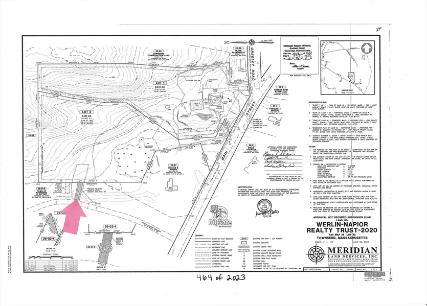 This beautiful 5.14 acre lot would be a wonderful location for your new home. It borders 20 acres of conservation land that has trails throughout for walking or riding. Water is stubbed at the edge of the property at the red arrow location on the map. Electric and communications are at Main Street and can be run through existing conduit to the property. There is an easement through the driveway on the west side of the property to provide access also at the red arrow. Perc testing has been completed with several viable locations for the septic system. The results are attached to this listing and the locations depicted on the plan. The best location for the septic can be determined once the house location is established. Several secondary uses are allowed that require a special permit. Please refer to the Zoning Bylaw Section 145-26 for more detail. Auxiliary uses will require Seller agreement.