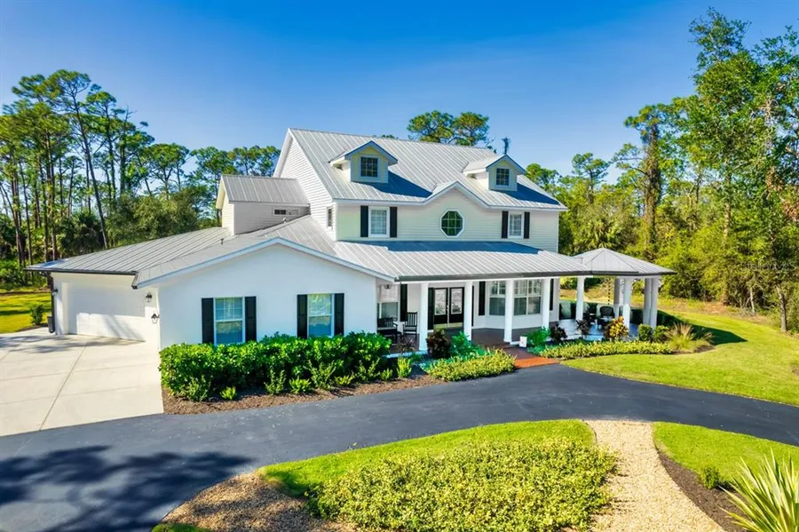 MOVE RIGHT IN! SELLERS SPARED NO EXPENSE WITH OVER $500K OF IMPROVMENTS/RENOVATIONS MADE!! Discover the perfect blend of luxury and comfort in this stunning 5-bedroom, 3.5-bathroom, two-story custom-built home nestled on a serene, wooded lot on over 5 acres in the coveted Myakka River Trails community. Every detail of this residence exudes sophistication and quality craftsmanship, offering an unparalleled living experience. The chef's kitchen has been completely redone with custom cherry cabinets, quartz countertops, and state-of-the-art appliances-2022. Luxurious custom oak hardwood floors, imported from North Carolina, span throughout the home, complemented by solid core doors and intricate moldings. A spacious dining room, a formal living room, and a bright sunroom create a welcoming atmosphere throughout. The living areas are enhanced by two stunning fireplaces featuring antique walnut wood mantles, adding warmth and elegance to the space. All bathrooms have been beautifully updated with high-end finishes, ensuring every space feels modern and refined. The property also boasts a 4-car extended garage with ample workspace and epoxy floors. Every detail has been considered with the installation of PGT hurricane-resistant windows and doors, offering peace of mind and durability - 2022. The newly installed variable speed Trane cooling system with a blue light feature ensures optimal comfort, while all LED lighting throughout the home enhances both efficiency and ambiance - 2022. Home features the convenience of a whole house instahot water heating system 2022, a whole home filtration and softener system with reverse osmosis in the kitchen along with a Generator/RV hookup ready electric outlet. Outside, the property boasts a brand-new pool surrounded by elegant travertine tile - 2023. Two commercial-grade outdoor grills make hosting effortless, while recently landscaped gardens enhance the natural beauty of the wooded lot. Situated just 10 minutes from SMH Hospital and 3 minutes from Wellen Park, also close by is a new Costco, Publix shopping plaza, restaurants, and walking trails-this home offers the perfect combination of convenience and exclusivity. Located within the gated community of Myakka River Trails which offers a PRIVATE BOAT DOCK (seconds from this property), fishing pier, community pool, tennis courts, playground, pavilion and where golf carts and horses are welcome. COMMUNITY HAS A DISCOUNTED FLOOD RATING TOO!! This property provides privacy and proximity to nature and all Wellen Park, Venice and Sarasota have to offer. This home seamlessly combines modern upgrades with timeless elegance, making it the perfect retreat for families or anyone seeking a luxurious lifestyle in a prime location. Don't miss the opportunity to call this exquisite property home! Home is no longer staged as pictured. Well Water Tested January 2025; Septic Cleaned November 2024; HVAC Maintenance May 2026 is transferrable to new owner.