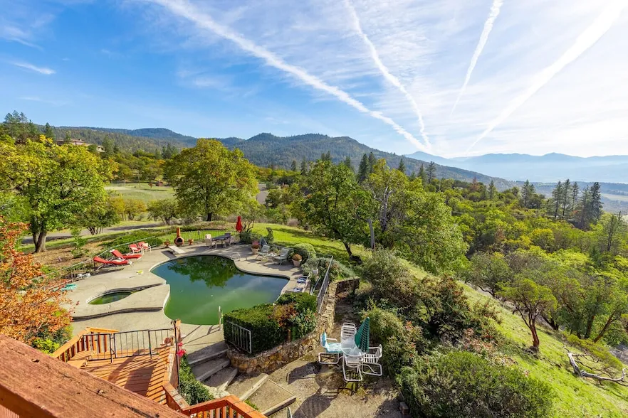 Incredible sunsets, mountain and valley views from this spacious contemporary style 4 bedroom-4.50 bath home situated on 5.16 acres within Sunridge Estates, a Gated Community off Hillcrest Rd. This home is close to hospitals, schools & only minutes to town. This 38-lot development shares a 10.0-acre Common Area, featuring tennis courts, baseball field, basketball court and picnic area which beams with wildlife and is maintained year-round. This home boasts vaulted clear fir-open beam ceilings, 3 cozy fireplaces, lots of Hd-Wd and tile floors, large kitchen with island, nook and sunroom to enjoy the views, Primary suite on main level w/large walk-in closet, sunken tub and access to the many deck areas, 2 of the 3 guest bedrooms have private entrances, Upper Level bonus area/office with Sky-Lites & bath, Family Room/Den with F-P and Lower Level Rec-Room. Amazing outdoor entertaining with gated IG pool and spa area, 3-Car garage w/large Stg-Rm, lots room for your RV and all your toys.