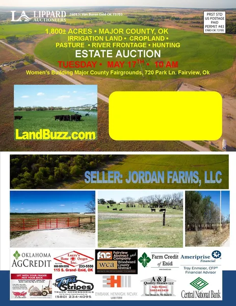Directions: From Orienta, Oklahoma (north of Fairview, OK), go 8 miles west on Hwy 412 to N2460 Rd, then 2.5 mile south to NE/corner of property.