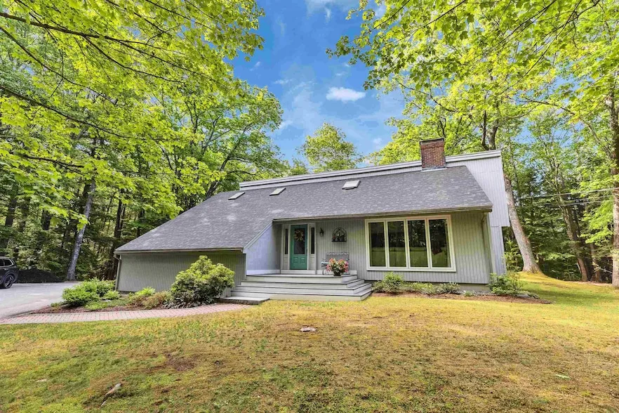 Tucked away on over 5 private acres in Peterborough, New Hampshire, this contemporary 4-bedroom, 4-bath home is both spacious and stylish. Inside, the living spaces feature cathedral ceilings, hardwood floors, and multiple gathering areas, including a vaulted great room with a stunning stone fireplace, a den with a wood stove, and a dining room that opens to the screened porch. The remodeled kitchen has granite countertops, a ceramic-tiled backsplash, stainless steel appliances, recessed lighting, and custom cabinetry with soft-close drawers. A first-floor bedroom en suite opens to a lovely deck and sitting area; alternatively, this space offers potential as a private office with its own side door entrance. Upstairs, you will find three well-appointed bedrooms, including a second primary en suite. A bonus room in the basement completes the picture. Ideal for indoor-outdoor living, the property has an expansive deck overlooking the natural surroundings, perennial plantings, and the scenic Cranberry Meadow trails is through the woods. Located just minutes from Depot Squares restaurants, shops, summer theater, music, library, and cultural attractions, this is the Monadnock region lifestyle you have been waiting for. Shown by appointment.