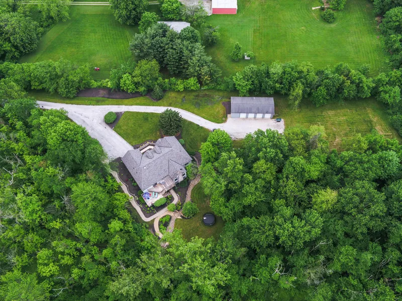Secluded Estate nestled on 5.18 Acres surrounded by MANY trees PLUS your OWN WOODED Ravine! The upgraded landscaping with a beautiful yard is one of the MOST important of MANY other features on this property! You can style this home in many ways! Enjoy the FULLY FINISHED Lower Level w/walk-out, separate access plus FULL kitchen & living area which includes bath, laundry, and 2nd masonry fireplace! New Updates: Full Bath remodeled, New Furnace, 2 Sump Pumps, Lift Pump, New Carpet Master/GR, Painted Fireplace, Gravel DW, Back-Up Generator & More. Hide away in the Detached Garage w/Oversized Doors PLUS Separate Office w/Access. Interior ALL the windows have FLAWLESS sights from ALL living spaces! Lovely front Library, Wet Bar, & LARGE Loft overlooks GR. Bedrooms ALL have Walk-in Closets!