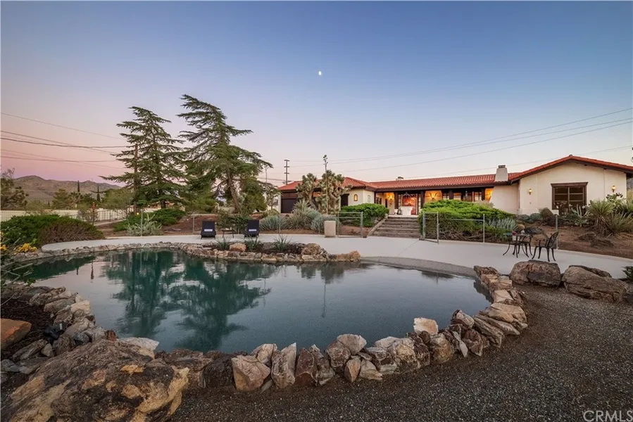 Welcome to the Magnificent Italian Oasis Estate in Sky Harbor. Located 1 mile from the entrance of Black Rock Campground in Joshua Tree National Park and situated on 5 legal lots. Featuring Interior Mahogany 16 panel doors, Imported Italian Tiles, Leaded Glass windows in the Kitchen and Bath, Palatial Cathedral Beam Ceilings, a sizable walk-in pantry, separate walk-in Wine Room, Wrought-Iron lighting fixtures and Wall Sconces thru-out. This home was custom built for both entertaining and personal privacy. The impressive large Chef kitchen is welcoming to friends for any occasion. It features 3 separate eating spaces; a casual breakfast space, a cozy lunch area and a spectacular formal dining room which opens to a spacious back patio designed for leisurely activity. The Lagoon Pool and Tennis Court allow for at home recreation. The accommodations are comprised of 4 En-Suites, 3 feature pr...