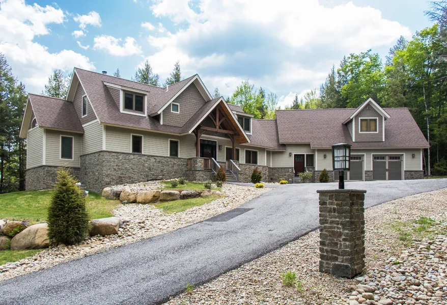 Heavy oak timbers define this efficient, well built and well-appointed wood pegged timber frame home. The rich, well coordinated earth tone paint scheme works well with the dark oak timbers and custom milled casings and interior trim. The workmanship on the interior and exterior elements of this house are unusually high. Enter the main foyer and look under the timber frame second floor bridge to the cathedral glass front living room with large timber rafters , stone fireplace, and rich pine ceiling. Stand in the kitchen and view across a ten foot granite eat at island into the dining area and living room. Premium appliances, custom cabinets, and excellent counter layout make this a chef's kitchen well designed for entertaining. The master suite is on the main floor. It is large and well lit with custom tile and glass incorporated into the master bath. Open heavy timber stairs with custom cable rail system lead to the cathedral ceiling large bedroom suites at each end of the bridge. The ceilings throughout the house are dramatic. Another beautiful carpeted bedroom suite with living room and game room in the basement with walk out to the sound of a running stream at the edge of the lawn. There is a huge bonus room over the garage. This is a dramatic, well-built home, that feels comfortable the first time you enter. The house sits well on the property, and the extensive use of stone on the exterior of the home gives a rich look. It is a very private setting ........but only 5 minutes from the base lodge at Gore.