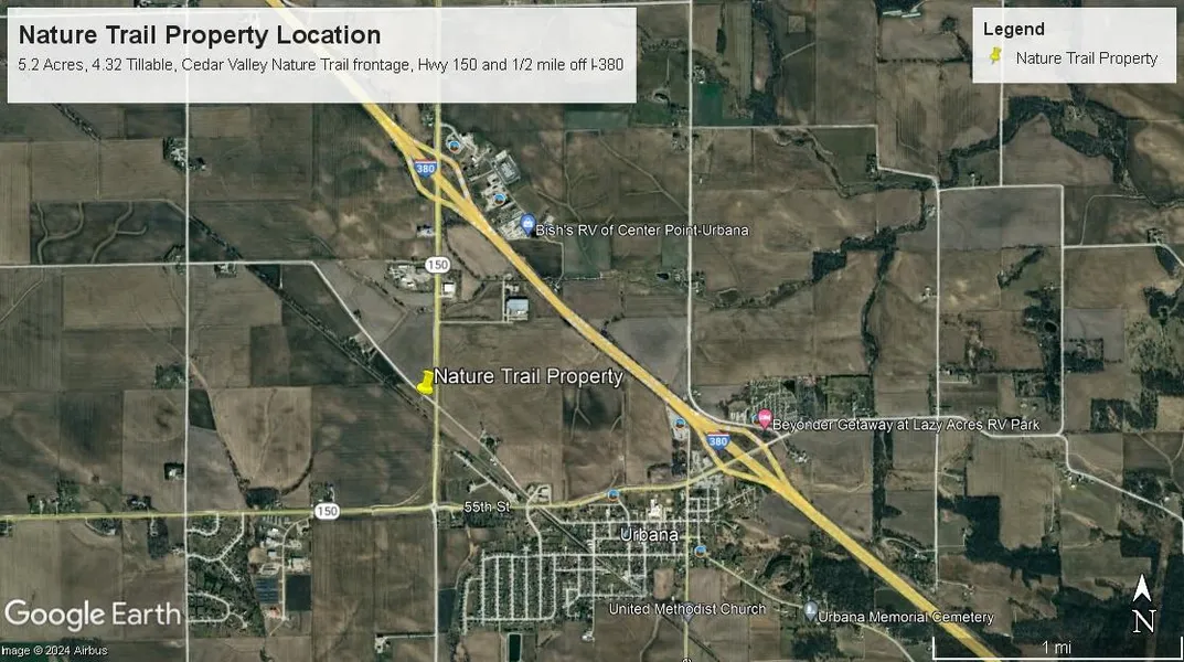 Midway between Waterloo and Cedar Rapids with 1,100 feet frontage on recently improved Cedar Valley Nature Trail Bike Path.