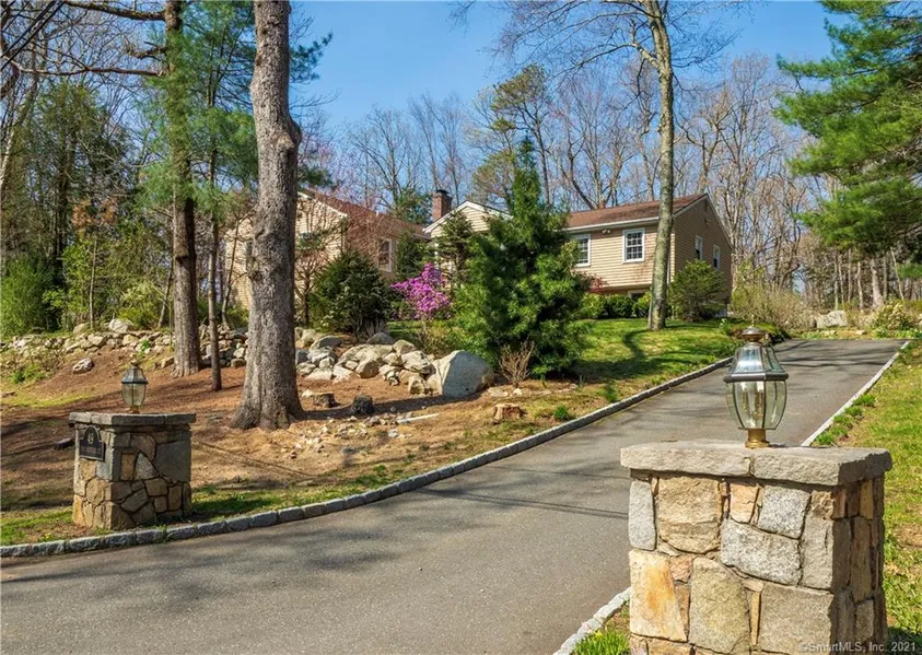 Welcome to this bright spacious Contemporary Home. Enter under the elegant portico to the front door and into a 2-story foyer w stained glass windows & tile floor. Step up to open-concept main living area with gleaming HW flrs, vaulted ceiling, floor to ceiling wood burning stone FP and a window wall with sliders to the large deck bringing the outside in. The Kitchen features a myriad of wood cabinets, granite countertops inc a large center island, a Viking gas range, SS sub-zero, SS DW & french doors. A windowed and skylite atrium/greenhouse with a french door to the deck and outdoors could also serve as a breakfast nook. 3 bedrms and 2 full baths are in one wing. The Master Bedrm with vaulted ceiling, large arched window, his and hers walk-in closets, and Master Bathrm with extra large glass tiled shower, jacuzzi, and built-in sauna are in a separate wing. The laundry is tucked away off MBR. The LL features 2 large multi-use rooms; Den/home ofc features tile floor and wood burning brick FP plus one whole wall of built-ins. Billiard room includes pool table plus sliders lead out to a small stone patio with stone walk to front of the home and also stone steps to the back of property. A 1/2 bath is on the LL. A guest powder room is on the ML. Just off the deck a stone bridge crosses the koi pond with waterfall feature and leads to the back lawn and rear of property. Minutes from supermarkets, pharmacies, coffee shops, varied restaurants & Metro North train to Stamford/ NYC.