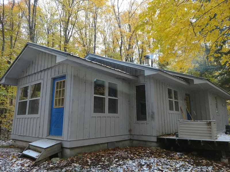 OFF GRID but with many conveniences! Cedar sided 2 Bdrm, 1 Ba 920sq foot seasonal cabin on over 5 acres. Additional 576 sq ft finishable living space with outside entrance and private deck above the detached 3 car garage. Enjoy the large open floorplan with kitchen, living room, family room, extra large bedroom and bunk room bedroom. Full bath has shower over tub. The water storage tank in the attic provides gravity feed from the 6" drilled well. Home is powered by an owned propane tank and heated by a cast iron wood stove. Detached 24x32 -3 car garage has concrete floor and higher single car door and standard double car door. Cabin is built on block crawl space and has a deck and metal roof. Many nearby lakes with boat landings, snowmobile & 4 wheeling trails, several restaurants and the Springstead Trading Post and Archery Range for needed essentials, gas, bait and hunting supplies. Cl...