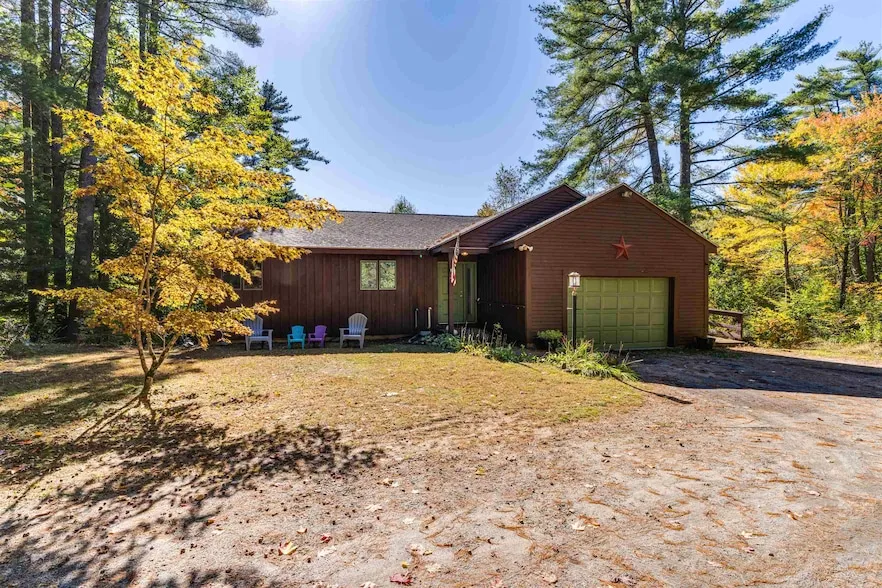 An open and airy ranch set on a beautiful 5 acre lot this quaint home in the woods provides privacy, space and convenience. From the attached garage you enter the main floor of the home which provides a spacious open kitchen/living space, two bedrooms, a full bath and office making single level living a breeze. Step outside to your expansive deck, where you can enjoy the soothing setting of the surrounding nature. The finished walk-out basement adds tremendous value, providing additional living space for a home office, gym, or entertainment area. The lower level provides a bath and wet bar creating a great opportunity for generational living. Direct access to the level backyard, it s a perfect spot for hosting gatherings or enjoying quiet evenings by the fire. The land features multiple gardens, natural landscaping and nature trail, this property is a nature lover s paradise, with plenty of room for outdoor activities, gardening, or simply enjoying the tranquility. Just around the corner you have deeded shared access to Forest Pond. Day to day you have the quiet and privacy of the backroads and you will not sacrifice convenience with this location. Located just 10 minutes to the shops and amenities of Meredith and 15 minutes to I93. This home offers a perfect blend of privacy and accessibility. Delayed showings until Saturday 4/5/25.
