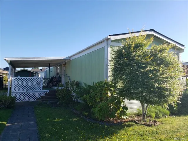Adorable well maintained 55+ community in Sumner. 3 bed, 2 bath manufactured home with spacious kitchen and all appliances included. Good sized master bedroom and bathroom on one side, and 2 additional bedrooms and bathroom on the other. Nice sized covered deck and storage shed. Roof is about 1 year old. RV parking and monthly space rental includes water, sewer, garbage.