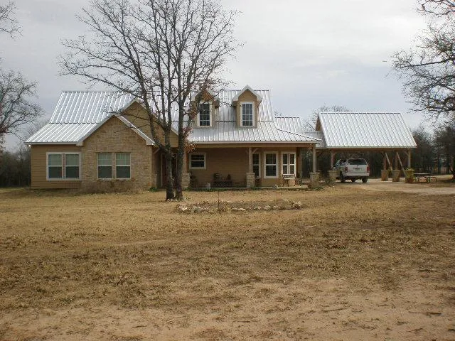 You need to see this one QUICK! Very Nice 3 Bedroom 2 Bath rock home with metal roof on 5.3 acres.Walk-in closets, Tile counter tops, stained concrete floors, Rock fire place. Fenced for horses, 2 stall metal barn with tack room, lots of hardwood trees, 2 pipe gate entrances.