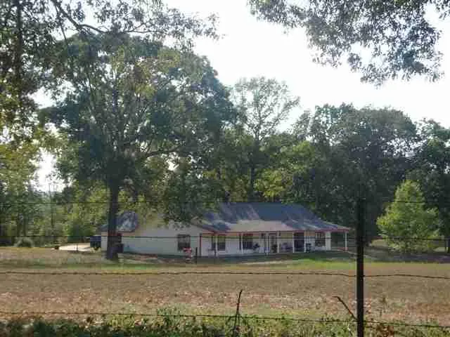 miles from Hwy 69, nice country road to property. Home has large open kitchen with island, and pantry. Features two living areas, split bedroom arrangement, Family room with wood burning corner fireplace, two dining areas. Wood flooring through-out family room, both dining areas, and both entry ways, scored flooring in bedrooms. Front porch across entire length of home, back porch overlooks country wooded views. Peace and quiet , but not too far out!