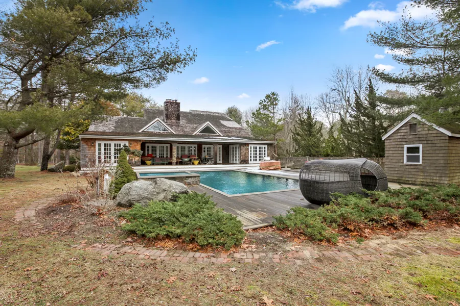 5BR/ 6.5 BA w/ Tennis on 5 + acres with Pool, Hot Tub & Sauna, open plan living / dining room / Kitchen and so much more! Escape Out East to Sag Harbor! Live the good life on this remarkable, 5.4 acre gated compound. There's no doubt you'll fall in love with the Hamptons, as you enjoy a peaceful stay at this private retreat! This stunning contemporary home sleeps 12, with five en-suite bedrooms, including three master suites, one on the first level with a sauna and a private deck. The sun-filled open concept living room features a cathedral ceiling, skylights, a gas-burning fireplace, and an open dining room with French doors leading to a covered porch. The spectacular state of the art kitchen features Subzero and Wolf appliances as well as a miele and nespresso machines. Additional highlights include a fully finished lower level with ping pong and pool tables, office set up and an additional queen pull out bed. You and your guests will love the convenience of the 7 smart TVs, 5 separate Sonos zones inside and a 6th outside, the Mesh wifi system (gigabyte internet) by Optimum, and the Samsung dryer and washer. In the sun-filled study guests will find a fully functioning office setup complete with a laser printer and IMAC computer. Additional features include top of the line mattresses on each of the beds, a peloton bike and brand new furniture throughout. The north wing master suite features a wood burning fireplace, a private study, a jacuzzi tub and a double shower. In the south wing master suite, you will find 20 foot ceilings, a surround sound system, an additional gas burning fireplace, soaking tub and a double rain head shower. Step outside for some fresh air and enjoy beautiful views of the large grounds featuring a heated gunite pool plus a 10 seat hot tub, a secluded and lighted tennis court, with separate covered entertaining space as well as a fire pit area. Guests can enjoy the use of adult and children's bicycles, beach chairs, a paddleboard and even a kayak. The home is surrounded by miles of nature preserve trail systems and private ponds to discover. Prepare to fall in love with the Hamptons lifestyle, as you experience it at its very best! This property is a 5 minute drive to Sag Harbor's Main Street and 7 minutes to East Hampton. This property has a max occupancy of 12 and can accommodate bunk beds for an additional cost.