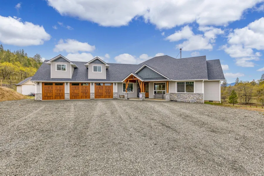 Exceptional craftsman style home situated on 5.34 acres. The layout of this home was thoughtfully designed with family at top of mind. Warm and welcoming feel with an abundance of natural light, nothing was spared as this home was built with premium and efficient amenities throughout. Moen fixtures, Navien hot water and Evolution furnace just to name a few. Light and bright kitchen with granite counters, custom cabinets, black stainless appliances with professional gas stove and large island. Central vacuum with individual outlets in every bedroom, interior fire safety sprinkler system, 3 car garage and a 40 x 80 shop foundation already in place. Stunning covered back patio that overlooks beautiful views of Table Rock and surrounding area. Property backs up to public ground to the south with an abundance of wildlife visiting the perimeter of this property, perfect for the outdoor enthusiast. This desirable area is known for its large lots and country setting only minutes to town.