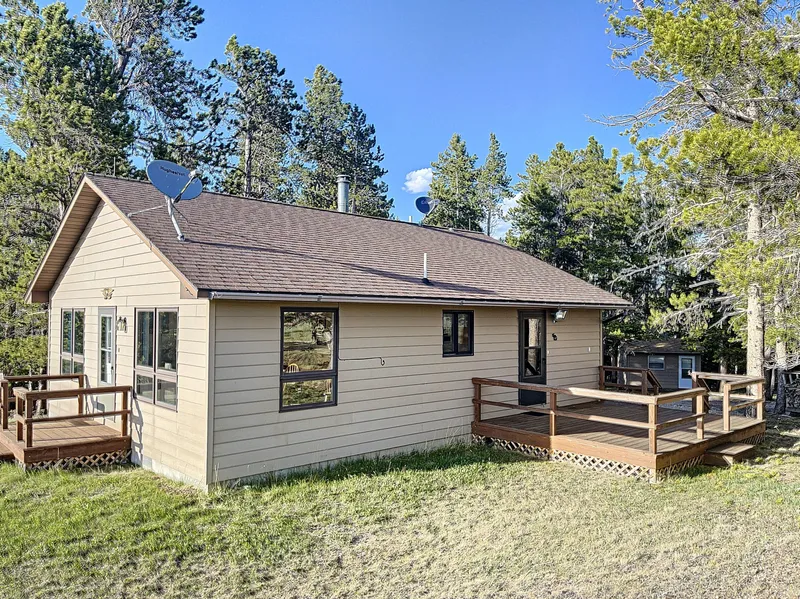 This 1 bedroom 1 bath (3/4) charming cabin is so well built and has all the convenience of living in town but the bonus of the mountain and is situated on 5 acres of private land in the Top of the Rockies Subdivision. It along with a second guest house are nestled amongst beautiful trees, but also boasts spectacular views of the Big Horns. It features an open concept floorplan, lots of closet space and a shed for all of your toys. This property has well and septic and can be easily accessed, The property is situated not far off of Highway 16 and is only about 30 minutes from town. Come check it out today! There are3 baths-1 3/4 Main 1-1/2 Bath Guest house and outhouse. There are actually 2 Bedrooms with the guest house and main house.